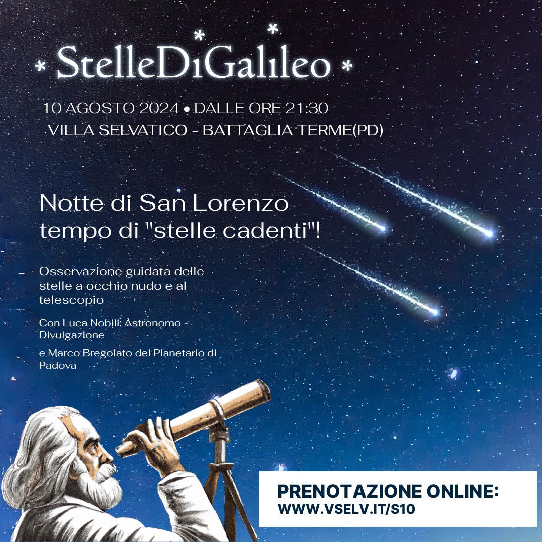 Tutti vorremmo vederle per poter esprimere i nostri desideri ma le “stelle cadenti” hanno molto altro da raccontarci. Cosa sono realmente? Come riuscire a vederne il più possibile? Villa Selvatico vi propone una serata speciale alla scoperta delle costellazioni e delle stelle cadenti tra curiosità, casi clamorosi e comete, spiegate da parte di Luca Nobili, astronomo del Planetario di Padova.